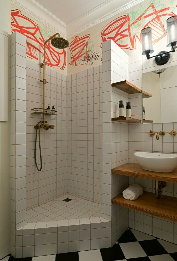 Граффити, яркие картины, RGB-подсветка в двушке 40 м²Дизайн