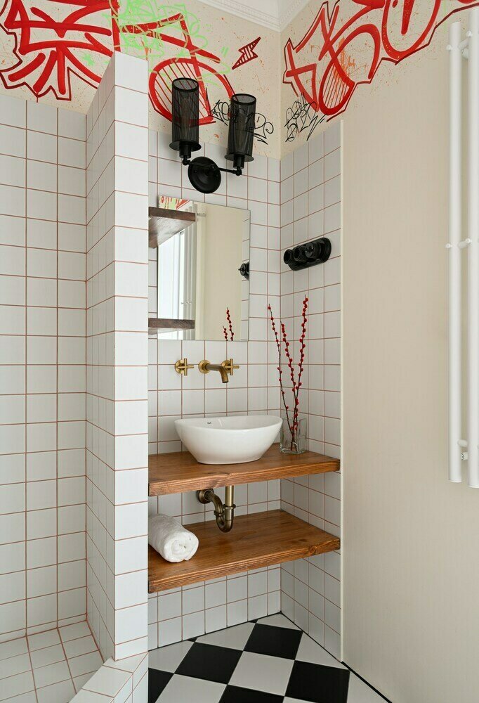 Граффити, яркие картины, RGB-подсветка в двушке 40 м²Дизайн