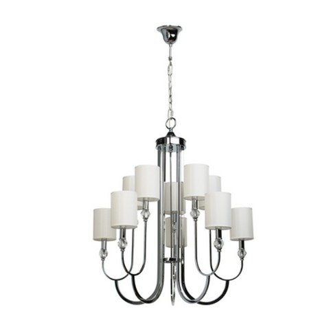 Металлическое основание цвета хрома, текстильные абажуры, декоративные элементы из хрусталя.