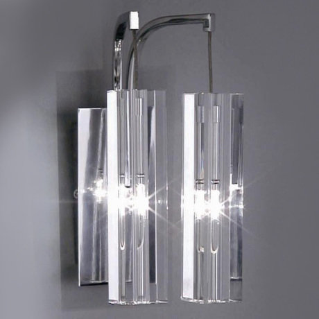 Настенный светильник из коллекции Sople на хромированной арматуре. Плафоны выполнены из прозрачного фактурного стекла.