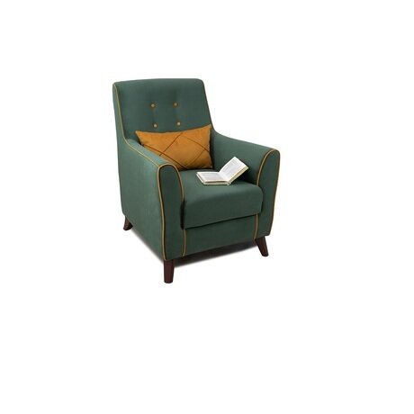 Ищете уютный уголок для чтения книг или вечернего отдыха? Кресло «Френсис» в насыщенном зеленом велюре решает эту задачу, занимая всего 0,8 м² пространства. Контрастный кант и декоративные пуговицы добавляют изделию элегантности, а открытая книга уже ждет своего читателя. Три главных преимущества: - Компактность — идеально впишется даже в небольшую гостиную от 12 м² - Бархатистая обивка — велюр приятен на ощупь и прост в уходе - Контрастный кант — выделяет силуэт и подчеркивает дизайнерский характер кресла Кресло «Френсис» отлично дополнит интерьер квартиры или частного дома площадью от 25 м². Его классическая форма с высокой спинкой создает комфортное пространство для чтения или просмотра телевизора. Особенно оценят кресло любители книг, работники удаленных профессий и те, кто ценит тихие вечера в окружении уюта. Технические характеристики: - Велюр Амиго — практичный материал, устойчивый к повседневным загрязнениям - Вес 17 кг — можно легко переставить при перестановке мебели - Деревянные ножки — обеспечивают устойчивость на любом напольном покрытии - Высокая спинка — поддерживает правильную осанку во время длительного сидения Кресло требует минимальной сборки — достаточно прикрутить ножки и можно наслаждаться комфортом. Идеально сочетается с диваном из той же коллекции «Френсис», создавая законченный гарнитур для гостиной или кабинета. Гарантия 18 месяцев от российского производителя «Нижегородмебель и К» подтверждает качество изделия и уверенность в долговечности каждого элемента конструкции.Отзывы