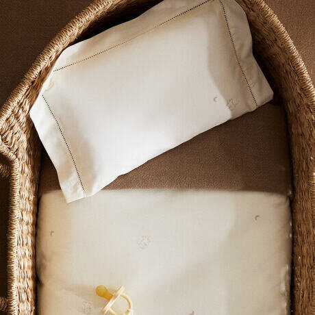 Детский комплект мини-кроватки с наволочкой и пододеяльником из хлопка плотностью 200 нитей с вышитыми мышками В комплект входят 2 предмета: одна наволочка (20 см х 30 см) и один пододеяльник (55 см х 30 см). 85 см).