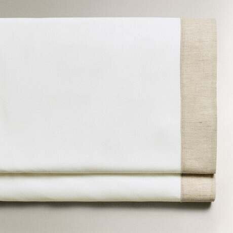Плоский лист из перкаля плотностью 200 нитей с контрастной льняной каймой.
