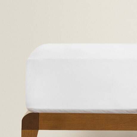 Простыня на подгонке с простой регулируемой посадкой из перкаля плотностью 500 нитей. Для матраса высотой 40 см. Регулируемые эластичные уголки.