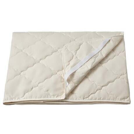 Наматрасник с чехлом из неокрашенного/неотбеленного хлопка и шерстяным наполнителем, который охлаждает в жару и согревает в холод. Продлевает срок службы матраса и удерживается на месте эластичными ремнями.