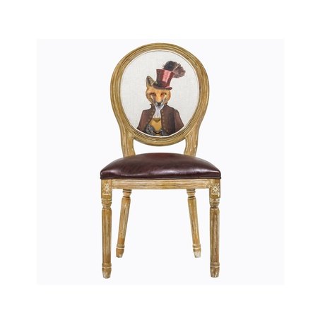 Чем хороша эклектика в интерьере, так это умением разбавить привычное необычным. Стул в лучших традициях французской мебели времен Луи-Филиппа украшен ярким современным принтом. Лисичка в дамском костюме для верховой езды – оригинально, не скучно, да и стилистически – точно в яблочко! Стул изготовлен из натурального массива бука и украшен резьбой вручную. Древесина выбелена и искусственно состарена. Вес стула равен 7 кг. Обивка сиденья выполнена из эко-кожи.