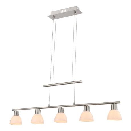 Назначение светильника: для гостиной, Стиль светильника: модерн, Тип: подвесная, Материал светильника: металл, стекло, Длина (мм): 100, Ширина: 970 мм, Высота: 1500 мм, Количество ламп: 5 шт., Тип лампы: светодиодная, Мощность: 4 Вт, Патрон: LED, Цвет арматуры: матовый никель