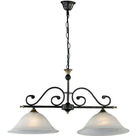 Этот светильник на два плафона из белого матового стекла может похвастаться небольшой высотой (39 см), так что запросто впишется в гостиную с низкими потолками. Металлическая арматура в коричневом цвете выполнена в форме завитков и украшена золотыми элементами. Модель относится к подвесным светильникам.Количество ламп 2. Мощность лампы, W100. Общая мощность, W200. Площадь освещения, м2 11.1. Тип цоколя E27. Тип лампочки (основной) Накаливания.
